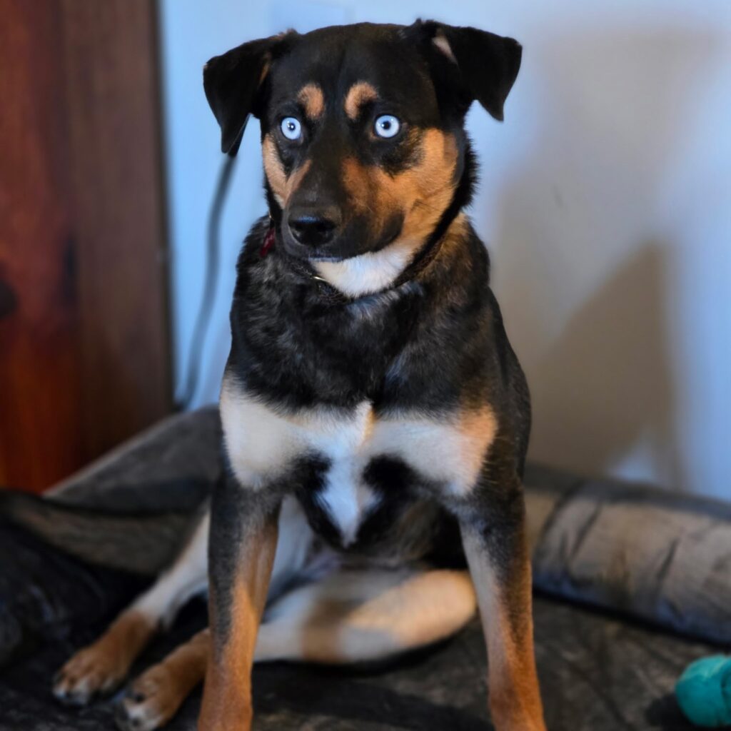 Hi, I’m Bailey! I’m 2 years old, 32 pounds, and apparently, my striking blue eyes made quite an impression… but I think it was my calm personality and good leash manners that really sealed the deal.