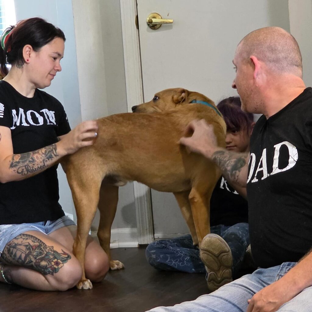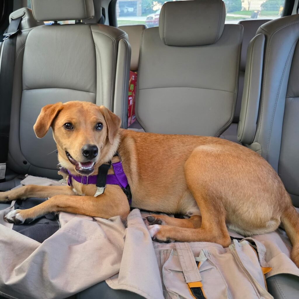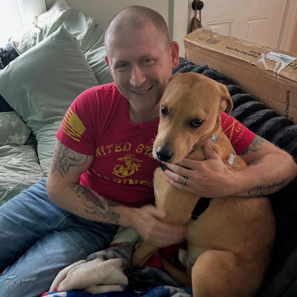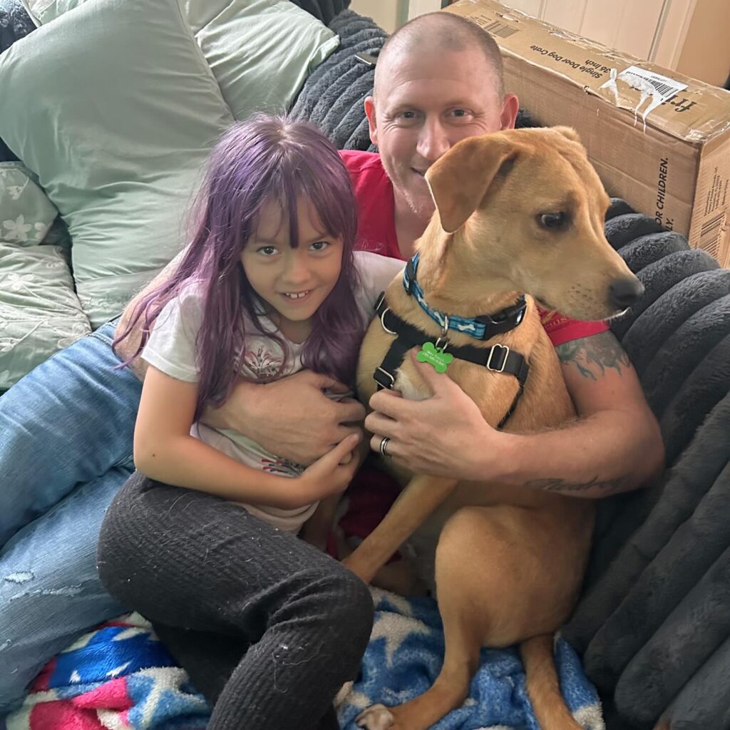 That human turned out to be Mike, a Marine Corps veteran who served during Operations Iraqi Freedom and Enduring Freedom, looking for a loyal, easygoing companion. Thanks to VCAS, Gigi’s, and my amazing foster family (shoutout to Tim and Carly!) I got matched with Mike and his crew: his wife, 8-year-old daughter, a wild Husky brother, and two cats who are still trying to figure me out.