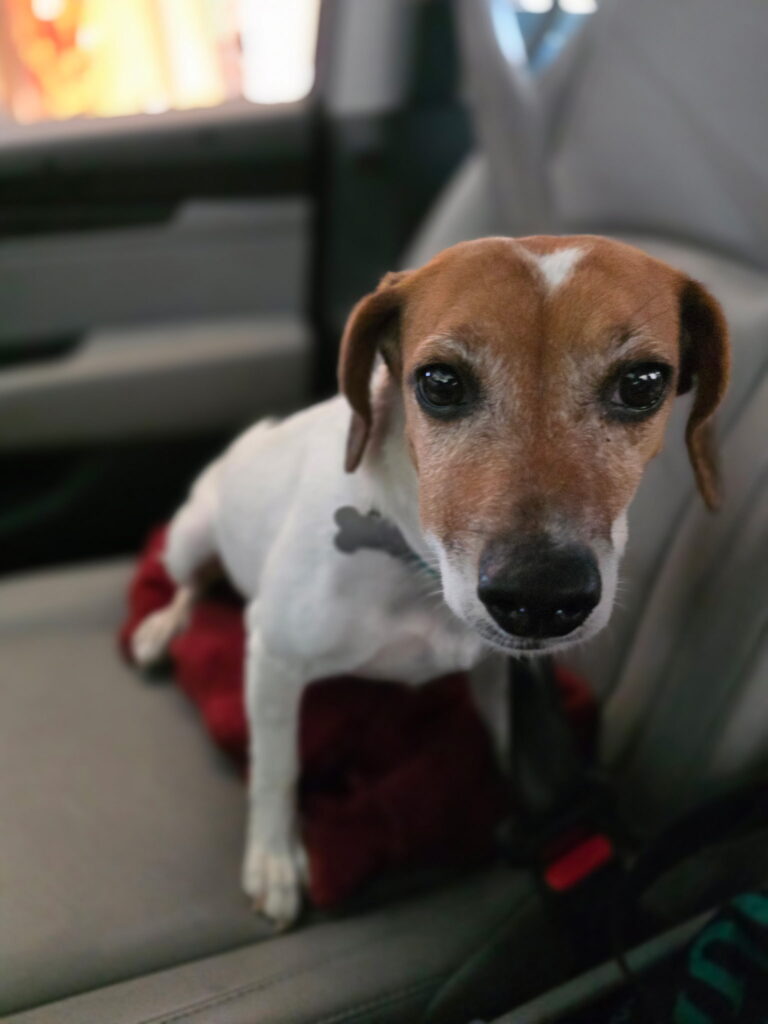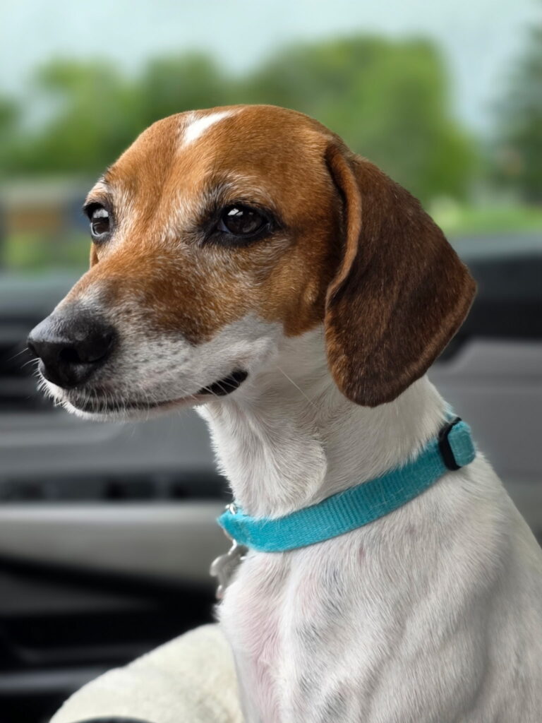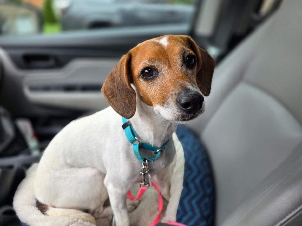 Hi, I’m Esmé. I am a sweet little Jack Russell Terrier mix who weighs 17 pounds and is about 3 to 5 years old. I was found in Lawrence County and brought to Gigi’s, where I got the care I needed after raising a litter of pups. With their help, I was finally ready to begin a new chapter of my life.