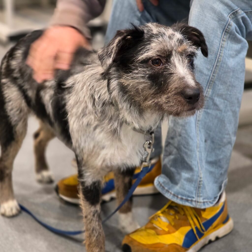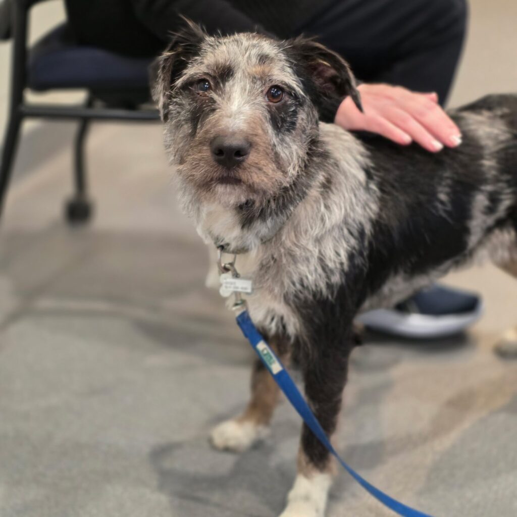 Hi, I’m Fig. I’m a 1-year-old, 20-pound rescue from Gigi’s , with a black, gray, and white coat and a heart that just wanted somewhere to belong.