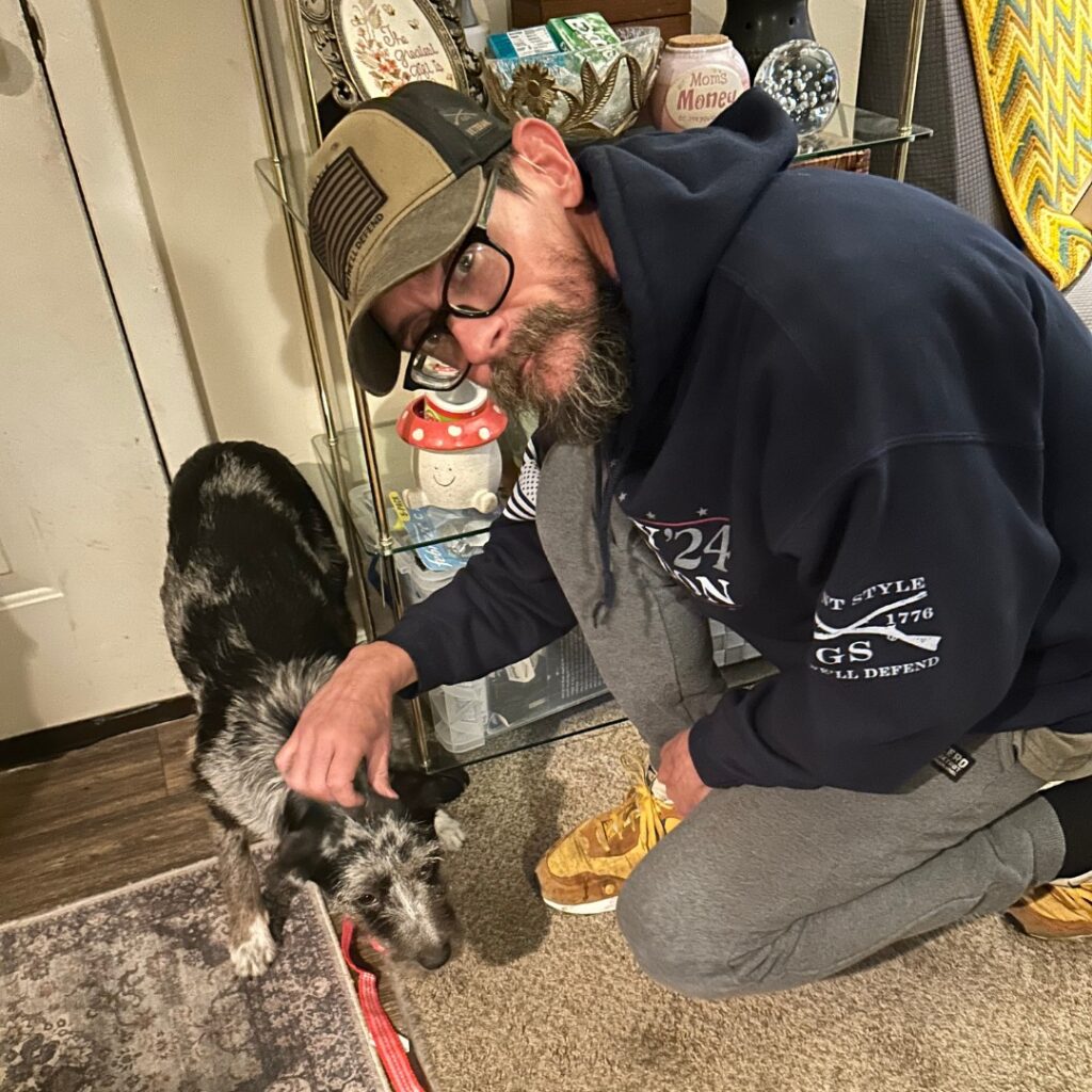 Barry, an Army veteran who served four years as an Infantryman, and his wife were looking for a small dog who could get along with their cat, enjoy long walks, and still be happy curling up together at home. I was looking for safety, love, and someone to choose me.