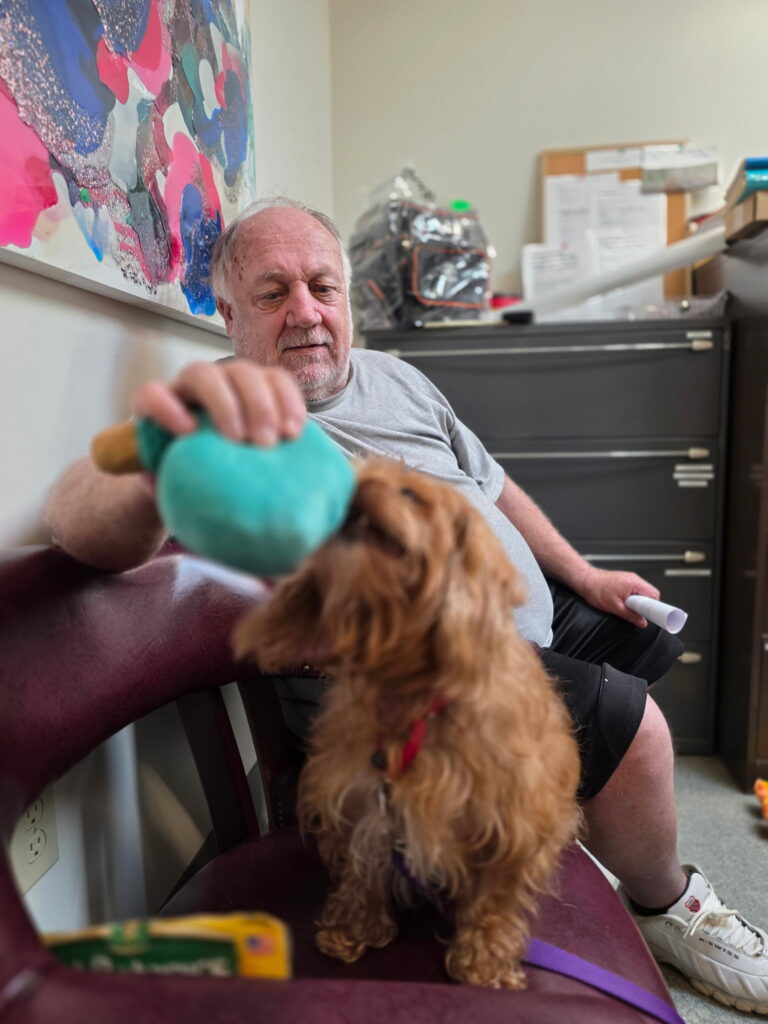 After 12 years of service, my human Dave was looking for a small pup who could keep up on short walks and chill on the couch, and I nailed the assignment. Thanks to VCAS, the Humane Society of Delaware County, and my awesome foster parents, Kim and Gary, I found my forever home.