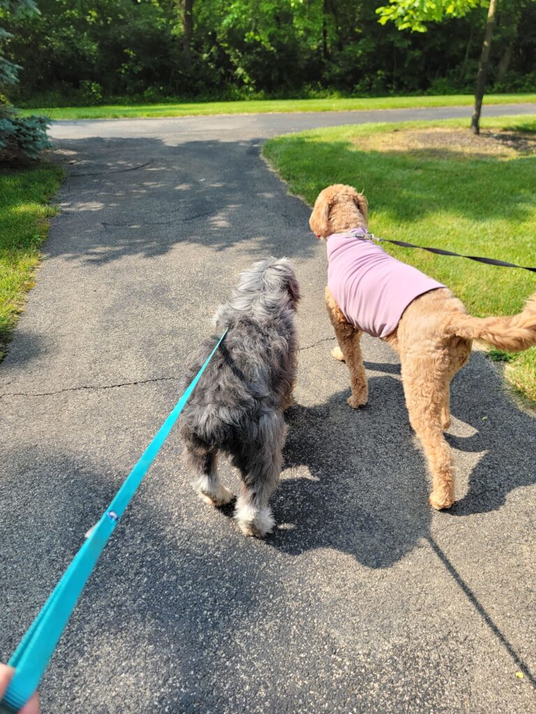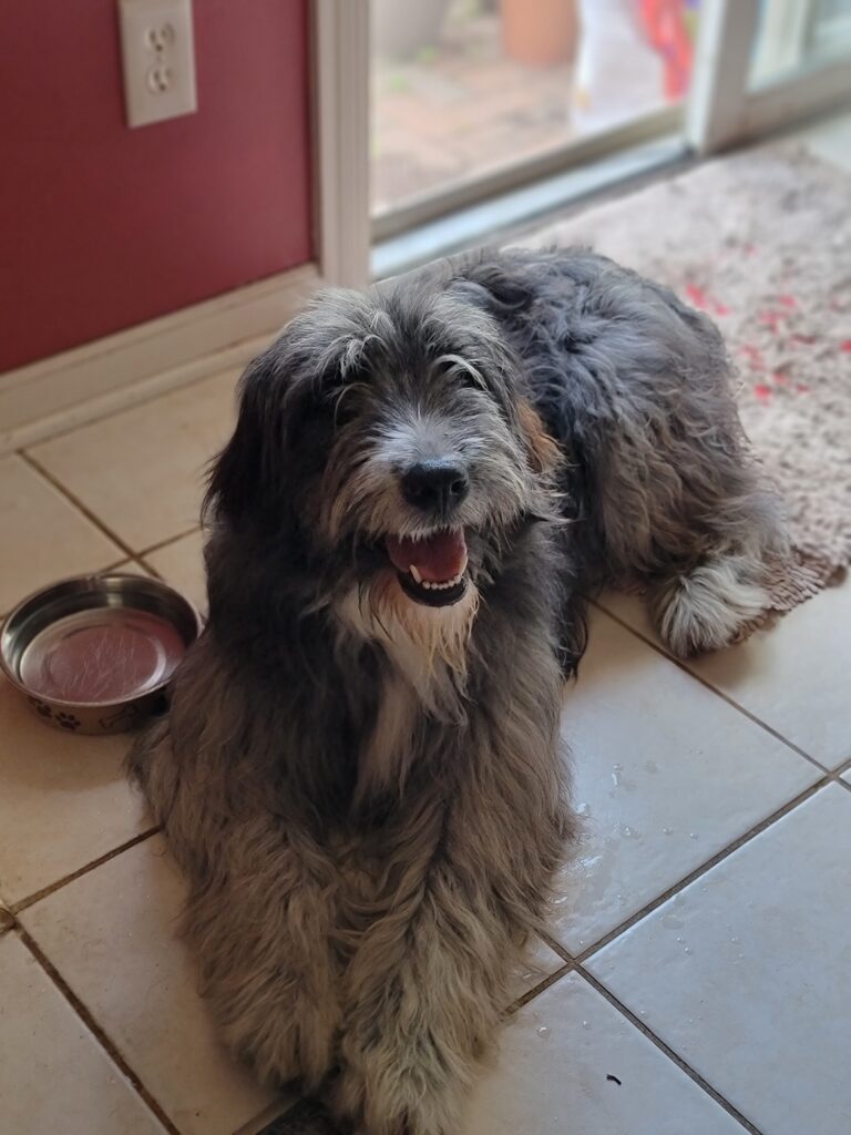 Hi, I’m Milo! I’m 1 year old and 56 pounds, probably a sheepadoodle mix. I started life as a stray with my siblings (they’ve all been adopted too!) before Gigi’s took me in, gave me medical care, and helped me get ready for my forever home.