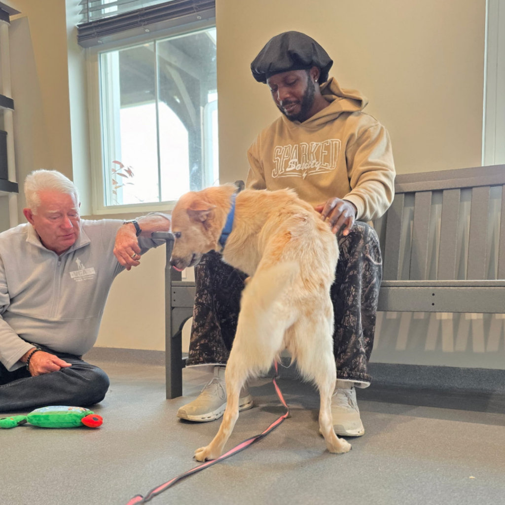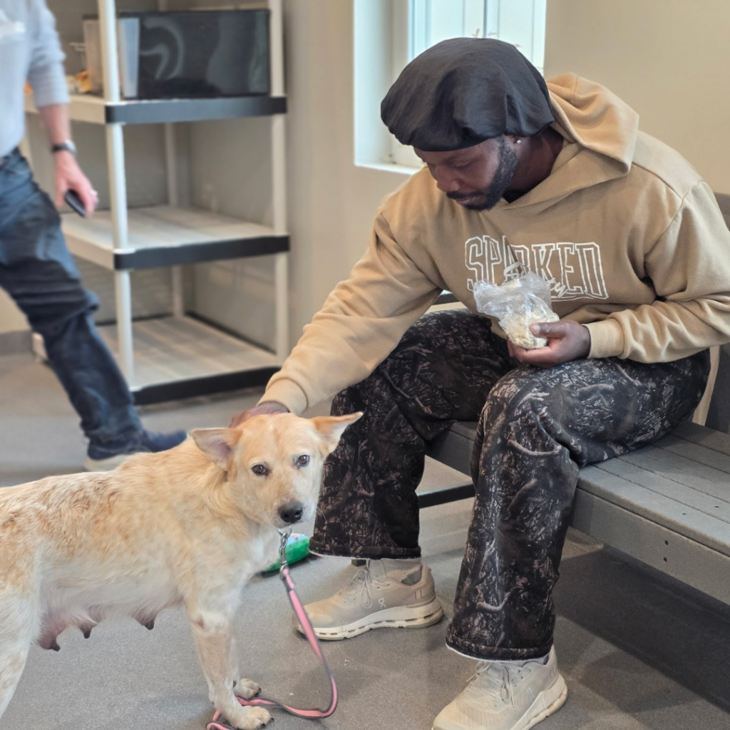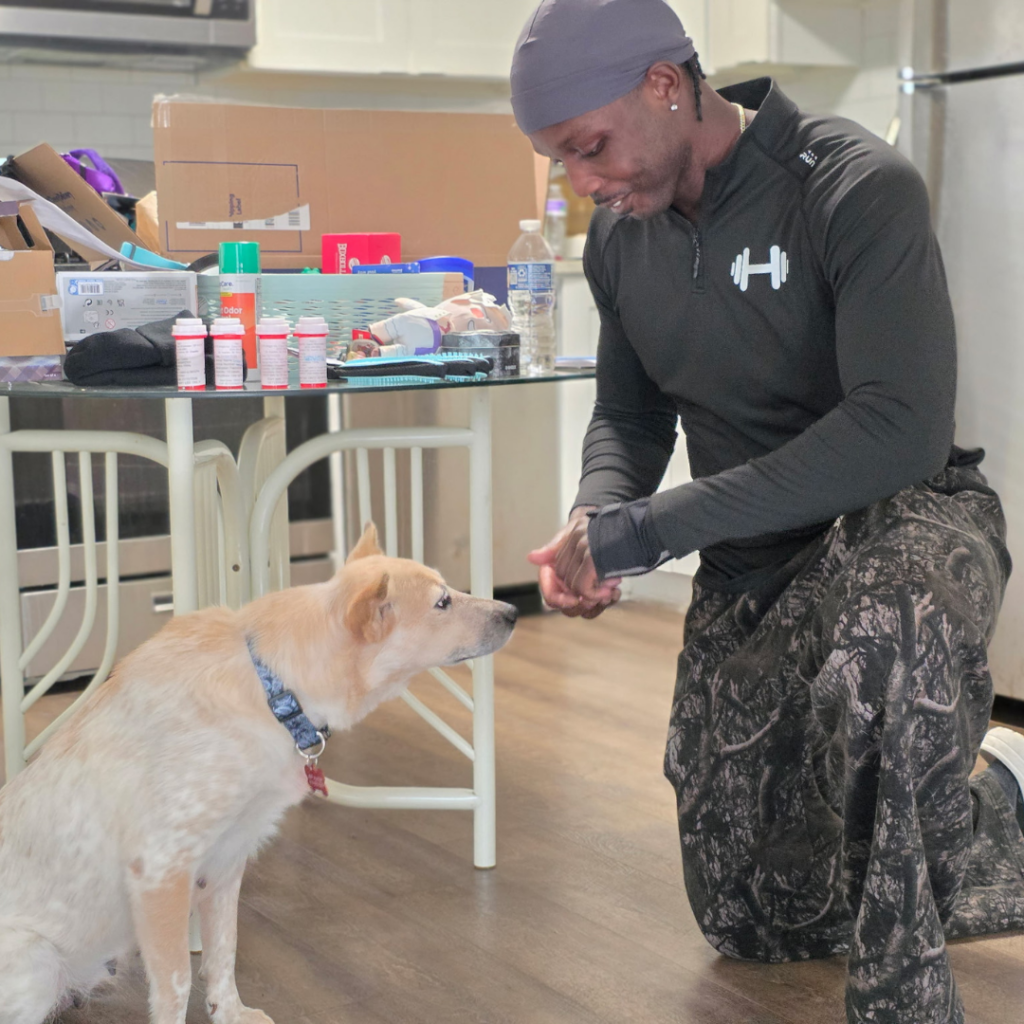 Hi, I’m Shea! I started life as a stray mama last October, made sure my pups were ready for the world, and then waited patiently for my own next chapter at Gigi’s. Enter Jeff, an Army veteran who served six years as a Motor Transport Operator and was ready to become a first-time dog dad. He was looking for an active companion, and at 2 years old and 44 pounds, I was the perfect match.